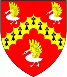 William Rees-Mogg, Baron Rees-Mogg (1928-2012), son, of Ston Easton Park and Hinton Blewett[7] in Somerset, editor of The Times newspaper (1967–81), chairman of the Arts Council of Great Britain, and vice-chairman of the BBC, created a Life Peer in 1988. In 1964 he purchased the large Georgian mansion house Ston Easton Park near Bath, Somerset, built by John Hippisley-Coxe (died 1769), a relative of his ancestress Dorothy Hippisley, the wife of John Mogg (d.1728) of Farington Gurney, whose son purchased Cholwell in 1726.[5] Ston Easton had been threatened with demolition and Rees-Mogg partially restored it.[8] In 1978 he sold Ston Easton to the Smedley family. He married Gillian Shakespeare Morris, a daughter of Thomas Richard Morris, a Conservative party local government politician and Mayor of St Pancras in London. His 2nd son is Jacob Rees-Mogg (born 1969), of Gournay Court[9] in the parish of West Harptree[7] in Somerset, a financier and since 2010 the Conservative party Member of Parliament for North East Somerset, in which constituency is situated Cholwell House. Jacob's official website states: "Being elected fulfilled his ambition to represent the Somerset parliamentary seat in which his family has lived for generations".[7]