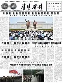 Chongnyon Jonwi (Korean: 청년전위; lit. youth vanguard[1]) is a daily newspaper in North Korea. It is the official organ of the Central Committee of the Socialist Patriotic Youth League.[2] It is one of the three most important newspapers in the country, the other two being Rodong Sinmun and Joson Inmingun. Chongnyon Jonwi is particularly known for jointly publishing New Year editorials with the two papers under the rule of Kim Jong-il. Most of its regular articles are commentary on the contents of Rodong Sinmun from a youth perspective. The editor-in-chief is Choe Sun-chol.[3]