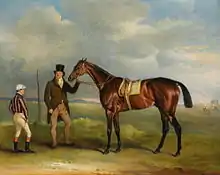 ![]() The Marquis of Cleveland's 'Chorister, winner of the 1831 St. Leger, held by his trainer John Smith by John Ferneley | |