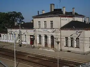 Choszczno railway station is a railway station serving the town of Choszczno, in the West Pomeranian Voivodeship, Poland. The station is located on the Poznań–Szczecin railway and the now closed Grzmiąca–Kostrzyn railway. The train services are operated by PKP and Przewozy Regionalne.