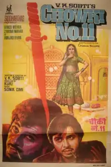 Chowki No.11 (transl. Checkpost No: 11) is a 1978 Hindi-language action film, produced by Kuki on Reaching New Heights banner and[2] directed by V.K.Sobti.[3] Starring Vinod Mehra, Amjad Khan, Zarina Wahab while Jeetendra has given special appearance[4] and music composed by Sonik Omi.[5][6]