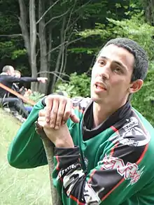 Chris Anderson is a Ex light infantryman in the 1st Battalion, The Rifles of the British Army.[2] He comes from Brockworth, the village in Gloucestershire at the foot of Cooper's Hill, venue for the cheese rolling races.[3]