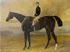 Half Caste, the 1859 Grand National winner, was painted by Henry Barraud later that year.[83] No publicly available image of this painting has been found but a contemporary image of Half Caste with Green up is held by one of Christopher Green's descendants and this may be based on this. The original was sold by Sotheby's, London on 18 July 1979.[84]