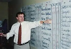 In 2016, Murphy walked 126 miles across the state of Connecticut, listening to constituents and holding daily town hall meetings.[58] Murphy repeated the walk in 2017, covering 106 miles and holding five town hall meetings.[59]