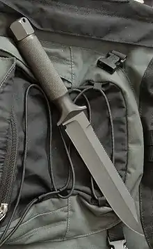 - Green Beret:[8] production 2002 – present. Fixed blade knife designed in collaboration with William Harsey Jr., featuring single row serrations and a CPM S30V stainless steel spear point blade, offered in 139 mm and 177 mm (5.5" and 7") blade lengths. A version of this knife with special engraving and serialization on the blade, known as the Yarborough (named for Lieutenant General William P. Yarborough), is presented to select graduates of the United States Army Special Forces Q Course.[4]