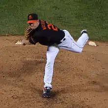 Waters made his major league debut with the Orioles on August 5, 2008 against the Los Angeles Angels of Anaheim. He went eight shutout innings in Baltimore's 3–0 win, giving up only one hit.[2] Later that same season, he threw a complete-game shutout against the Toronto Blue Jays on September 16.[3] Before being called up to the majors, he made 166 starts in 193 games in the minor leagues.