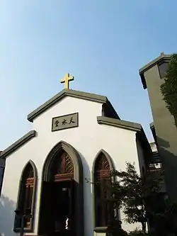 The church was originally built by missionaries of the Presbyterian Church in the United States in 1860.[1] After raising funds in 1874, John Leighton Stuart, father of John Leighton Stuart, rebuilt the church in 1875.[1] In addition, he built missionary residential buildings and men's and women's schools behind the church, forming a building complex covering an area of 53,333.33-square-metre (574,075.2 sq ft).[1] John Leighton Stuart born in the church on 24 June 1876 and lived here until he was 11 years old.[1] After John Leighton Stuart died of illness in 1913, the missionary work was replaced by Chinese priests.[1]