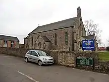 Christ Church is built of coursed and squared rubble stone, with a slate roof. It is made up of a five-bay nave, chancel, west porch and north vestry. The roof's west gable has a bell-cot with a single bell and the west end of the nave contains a gallery designed for the organ and choir.[2] The church's organ was built by Sweetland of Bath in 1857 and later rebuilt in 1936 by W.G. Vowles Ltd of Bristol.[9][14]