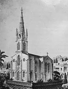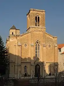 Christ Church in Nazareth is the last work of Swiss architect Ferdinand Stadler. Works at the site began in 1869 but construction was not completed when Stadler died in 1870. When the church was finished in 1871, it was the second Anglican church to be built in the Holy Land. The first is located in Jerusalem.[1] The building was consecrated by Bishop Samuel Gobat, and Rev. John Zeller was the pastor at the time of its consecration. The Church Mission Society (CMS) provided many of the early missionaries who served at Christ Church.[2] It served as a mission center for the region and ministry also took place in Mujeidal (today's Migdal HaEmek), Reineh, and Kafr Kanna (Cana of Galilee).