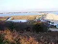 Along part of the south west side of the Stanpit road is Stanpit Marsh. It was formed as the result of action and deposition of material from the rivers Stour and Avon as they meet with the salt water within Christchurch Harbour. Together with Grimbury Marsh, it forms one of the largest areas of salt marsh in the county.[22] It is a Site of Special Scientific Interest (SSSI) and an important nature reserve of about 65 hectares (160 acres), combining both freshwater and saltwater habitats.[23] It is an important staging point for migratory birds. A circular path on the marsh uses a prototype Bailey bridge to cross Mother Siller's Channel. The highest point of the marsh is Crouch Hill at 15' above sea level.[22]