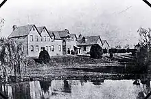 The Provincial Government voted £1,500 to building the hospital in Christchurch in 1861. The initial building was a two-storied "barn-like structure" on Hagley Park at Riccarton Avenue. It opened on 1 June 1862, after "Hands off Hagley" protests by citizens.[6] The last of the original buildings were demolished in 1917.[7]