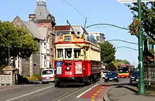 The end of the war heralded one of the most turbulent periods in the Board's history. Years of deferred maintenance, heavy usage during the war years, and a lack of skilled staff, materials, and spare parts had left the tramway in poor condition. A significant investment was required to renew the system but uncertainty was growing over the future of the trams. The Board also had to contend with a more aggressive union movement, and a council that was seeking legislative authority to enable it to assume control of the tramway.[14] This was to be one of many occasions on which it was suggested, or an attempt was made, to have the Board assimilated by the City Council or controlled by a Council-affiliated Metropolitan Board of Works.[15]