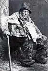 Christen Christian Larsen was a cripple and vagabond from Himmerland, Denmark, who had the nickname Tordenkalven (English: Thunder calf). His mother was Maren Christensdatter and his father, Lars Sørensen, a house servant. He is especially known through Johannes V. Jensen's story about him. Tordenkalven was born outside marriage on 12 September 1816 at Stenildvad in Aars parish. The family was very poor and he began to beg him for the family when he was only seven. After his confirmation he was employed on several farms. He was known for his enormous strength. When called up, he joined the infantry, but after two days in service he was discarded. During his appointment at the manor house Lundbæk at Nibe, he rode a horse, but it threw him off and he broke his leg. An incorrect coagulation of the femur disabled him and he went around on crutches as a tramp until his death in 1891. Tordenkalven died on December 5, 1891, at Søren in Veggerby near Nørre Tranders. He was buried at Nørre Tranders Church where a large granite stone carved by sculptor Carlo Vognsen stands as his memorial.[1][2]