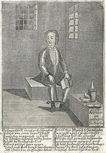 Käsebier was staying in Brandenburg an der Havel under an assumed named when he was finally arrested in 1748 and sentenced to life in prison at Stettin by the King.[1][5]