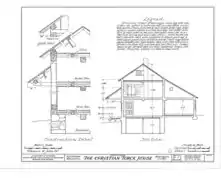 Perrin points out that the Turck house is important because few examples of this German Blockbau style (solid logs) remain in Wisconsin, in contrast to the more common German Fachwerk style, where the framing logs are filled with brick or some other material.[5] Because of this, the Historic American Buildings Survey carefully documented the house in 1936. At that time John Schottler was living in the house and the surveyor described its condition as excellent in one place and fair in another.[8] That 1933 survey produced these documents: