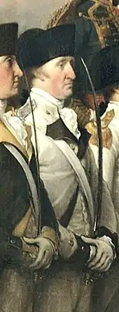Due to a former business agreement of Louis XV of France and his father from March 1751, who promised to the French king to raise a battalion of infantry for France when and if needed,[7] the Infantry Regiment "Royal Deux-Ponts" (raised on 19, 1757) of two battalions to the French crown after the outbreak of the Seven Years' War, when it was at first deployed in the Battle of Rossbach. The commander of the regiment at this time was Christian von Forbach, and his brother Philippe Guillaume (later renamed to Wilhelm) was deputy commander. As part of De Rochambeau's expedition corps he led the "Royal Deux-Ponts" during the American Revolutionary War, where the regiment proved in the Battle of Yorktown, also called the "German Battle", on October 4, 1781.[8] In 1783 he married Adélaïde-Françoise de Béthune-Pologne (1761–1823). The couple had three daughters. The first of them Maria Amalia Charlotte Auguste died in her year of birth 1784. The others were Maria Amalia Charlotte Franziska Auguste Eleonore (1786–1839) and Kasimira Maria Louise Antoinette (1787–1846).[9]