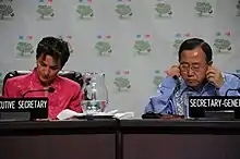 During her tenure as Executive Secretary, she led the UN Climate Change Secretariat's delivery of six consecutive yearly global negotiation sessions, culminating in the historical Paris Agreement in December 2015.[44][45] Her engagement and close collaboration with yearly rotating presidencies (Mexico,[46] South Africa,[47] Qatar,[48] Poland,[49] Peru[50] and France[51]) provided the necessary framework and continuity that allowed every annual negotiation to build incrementally solid ground of common purpose.