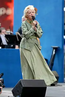 She also has appeared on several albums. She was featured on the Bright Lights, Big City concept album.[7] She also released an album of Noël Coward songs after browsing through them for scene change music for Blithe Spirit.[27] She is also the voice actress for White Diamond on the popular show Steven Universe.