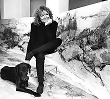 The jury around Walter Jens awarded her the first prize in the artistic competition for the Memorial to the Murdered Jews of Europe together with Hella Rolfes, Hans Scheib and Reinhard Stangl. But voices were raised that rejected the decision, and due to the intervention of the incumbent Chancellor Helmut Kohl, their design was not built. This started a year-long reorientation with discussions on the location of the monument in Berlin, on the groups of victims of the Nazi dictatorship honored with it, and on the importance of memorials in the 20th and 21st century.[1][2] In his book Tacheles—In the Struggle for Facts in History and Politics, published in 2020 by Herder Verlag, Michael Wolffsohn describes the central background in the chapter Art as Politics: The Berlin Holocaust Memorial;[3] and Michael S. Cullen put it: "Winning a competition fairly is ideal. Losing a competition by fair means is perhaps not ideal, but no less honorable."[4] With this in mind, Christine Jackob-Marks painted new pictures; often to music and often to the Schubert interpretations of her deceased husband:[5] She made drawings with Indian ink and charcoal, in addition there were strong color changes in mixed media of landscapes, of layers of earth: edges of the open-pit coal mines of the Lausitz region, eruptions of volcanoes, the wild sea, to cosmic black holes, to spiral nebulae from distant suns and back again to earthly nature with its creatures. Manfred Eichel describes her works as sliding into abstractions, as landscapes of the soul: as "pictures in which something actually happens, which are not satisfied with depicting what is available more or less exactly. There is something deeply theatrical about her (Christine Jackob-Marks) interpretations of nature. Her forests blaze, flooded with light, as if they were on fire ... ";[6] the former head of the ZDF feature editorial team for literature and art adds: "What makes your horses comparable to your dogs and elephants is the treatment of the eyes. They literally suck in the viewers. It's strange when you look at her monkeys."