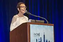 ![]() Christine Orengo in speaking at the Intelligent Systems for Molecular Biology (ISMB) conference in Chicago in 2018 | |