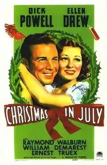 Christmas in July is a 1940 comedy film written and directed by Preston Sturges based on his 1931 play A Cup of Coffee. It was Sturges' second film as writer-director, after The Great McGinty, and stars Dick Powell and Ellen Drew.