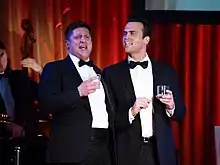 ![]() Christopher Sieber, left, and Cheyenne Jackson at the Drama League Benefit Gala Honoring Angela Lansbury, February 8, 2010. | |