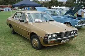 October 1983 saw the release of the luxurious, Sigma Super Saloon.[27] Produced as a limited edition of 500 cars and placed above the SE trim level from which it derives, it came only with the 2.6-litre in either five-speed manual or three-speed automatic.[26] The five-speed manual fitted was of Japanese origin, rather than the BorgWarner Australia unit previously fitted to Sigmas, and the suspension received a re-tune.[28] The Super Saloon featured two-tone metallic paint and crushed velour upholstery for the interior.[26] Two paint and trim combinations were offered—blue upper body with silver lower body and blue interior—or dark brown/light brown exterior with a bronze interior.[26] The Super Saloon introduced standard power steering, power windows and central locking—features that also became optional on Sigma GL, SE, and GSR trims.[27] The central floor console was also revised to accommodate the power window and central door locking switches.[26][27] Other equipment fitted to the Super Saloon included air conditioning, alloy wheels, and four-wheel disc brakes.[27]