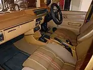 Sigma SE offered equipment including five-position, reclining rear seats.[5] An interior boot lid release, roof console (incorporating dome lamp, map reading lamp, seat belt and door ajar warning lamps), steel belt radial ply tyres, laminated windscreen, distinctive grille, smoked glass on all instrument dials, front seat back pockets, and Ivanhoe cloth trim were also standard with the SE (with leather optional).[5] The SE was further distinguished by its body-coloured hubcaps with silver trim.[9]