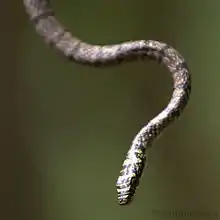 Chrysopelea taprobanica, the Sri Lankan flying snake[2][3][4] or Indian flying snake,[1] is a species of gliding snake distributed in India and Sri Lanka.[1][5] It can glide, as with all species of its genus Chrysopelea, by stretching the body into a flattened strip using its ribs. The snake is known as "dangara dandaa - දඟරදන්ඩා" in Sinhala, due to its folding postures.