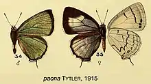 Chrysozephyrus paona, the Paona hairstreak,[1][2] is a small butterfly found in India that belongs to the lycaenids or blues family.