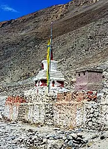 Behind and above the village is a small village gompa or monastery.