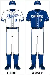 The Chunichi Dragons were formed in 1936 as the Nagoya Club. The franchise was acquired by the Chunichi Shimbun newspaper company in 1946.[1] They became the "Dragons" in 1947, but experimented with a number of variations on their team name before settling on Chunichi Dragons in 1954.