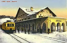The Chur–Arosa railway, also called the Arosabahn, Arosalinie, Aroserbahn or Aroserlinie (all meaning Arosa railway or line), is a Swiss metre-gauge railway, which is operated by the Rhaetian Railway (Rhätischen Bahn; RhB). It was built in 1914 by the former Chur-Arosa-Bahn (Chur-Arosa Railway; ChA) to connect the Grisons capital, Chur, with the spa town of Arosa. Since 1942, it has been integrated into the network of the Rhaetian Railway. The name of the former company is still used as a name for the line.
