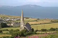 Church Bay (Welsh: Porth Swtan) is a settlement on the north-west coast of Anglesey, Wales, United Kingdom, about a mile and a half north-west of the village of Llanfaethlu. The bay shores are rocky but there is also a sandy beach which is popular with visitors. There are a handful of houses near the beach. The Anglesey Coastal Path runs along the cliff tops. There are records of the Swttan settlement going back to the reign of King Henry VIII, but there has probably been a settlement there for many centuries before this.[1] Most of the properties are holiday homes for rent. Amenities include a cafe[2] and a small museum based in a preserved 17th-century thatched cottage.[3] This cottage's position could indicate that there has been a dwelling on this site since Neolithic times.[1] The cottage won the Rural Wales Award from the Campaign for the Protection of Rural Wales (CPRW) in 2003.[4]