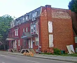 They were built during the years between 1855 and 1895. The earliest, at the corner of Church and Hamilton, are frame clapboard houses in the Greek Revival style. Later buildings used brick, incorporating elements of a variety of styles — Gothic Revival, Second Empire and Queen Anne — that were popular at the times of construction. The eclectic result is the city's largest collection of brick houses in one place.[1]