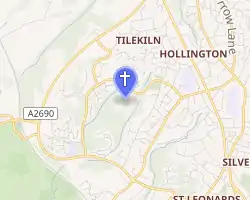 The parish of St Leonard includes a second Anglican church—the modern St Anne's Church on Chambers Road (at 50.8723°N 0.5434°E). This was built over several years from 1956 by the Brighton-based firm Denman & Sons to serve the rapidly expanding council estate west of the Battle Road.[31] The approximate boundaries of the parish are Battle Road, between the borough boundary in the north and Hollington Old Lane; the residential streets between Hollington and neighbouring Silverhill; the railway line between West St Leonards and Crowhurst railway stations (including some of the rural land west of it); and Breadsell Lane.[32]