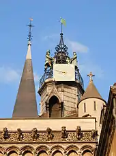 Above the façade there was originally intended to be a pair of square towers, but only the foundations exist. The southern one serves as a support for the jacquemart.
