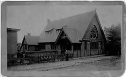 | Materials | Interior: Walls painted tint of green with a border of laurel wreaths. Pulpit and furniture are polished oak. Auditorium contains opera chairs. |