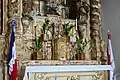 The interior of the church is typical of Bahian churches of the 18th century, with lateral corridors, but lacking tribunes.