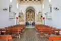 The interior of the church has three Baroque-style altars. The design of the central altar resembles those of the Basilica of the Immaculate Conception and the Santa Casa de Misericórdia. The ceiling of the nave is coffered and has elaborate painting by an unknown artist. The church and Summer Palace are connected by a distinctive loggia, or roofed gallery. The palace is structured around a central hall.[1][3]