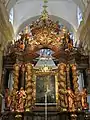 Two years later the statue was placed in the choir, and in 1656 moved to a small chapel in the church (now the Chapel of the Holy Cross). In 1776 a new red-and-grey marble altar for the shine was built.[9] With the abolition of the monastery under Joseph II, the church and its shrine fell into neglect.