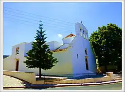 The Church of Panagia Protothronos (Greek: Παναγία Πρωτόθρονος, "Panagia of the First Throne") is located in the village of Halki in Tragaia, in the interior of Naxos island in Greece. The church is dedicated to the Annunciation, and was probably an early Christian basilica, of which only the synthronon and the episcopal throne in the semi-circular sanctuary conch survive. In middle Byzantine times the building was converted into a transitional cross-in-square church. A domed narthex was later added, flanked by the chapel of Saint Akindynos to the north and a vaulted rectangular room to the south.