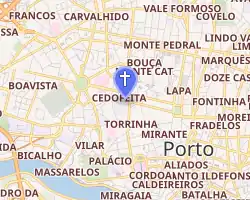 The church is located in the parish seat of Cedofeita, placing it in an urbanized environment with intense traffic, surrounded by a small garden, alongside the newer parochial church of Cedofeita (a church of grand dimensions that was constructed in the 1970s).[1]