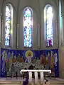 The present interior of the church dates from the 1960s. Featuring works of the sculptors Frano Kršinić[1][3] and Iva Despić-Simonović,[3] and painters Gabrijel Jurkić,[1] Đuro Seder,[3] Ivan Meštrović[1] Edo Murtić,[1] Nada Pivac,[1] and Oton Gliha,[1] among others, the Church of Saint Anthony of Padua is one of artistically most important churches in Bosnia and Herzegovina.[3] The adjacent monastery, built in 1894, houses the main archive of the Franciscan Province of Bosna Srebrena.[1] The church survived the shelling during the 1992–1996 Siege of Sarajevo remarkably unscathed, with significant damage being done only to the façade and the stained glass windows.[3] The restoration was completed in the autumn of 2006.[3]