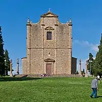 Construction of the present stone church was begun on October 28, 1628, based on designs by the architect Giovanni Coccapani, which were carried out by his pupil Ludovico Incontri. The new church was consecrated in 1775.