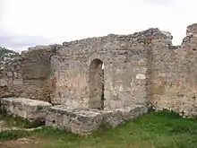 The original foundations of a church, a granite platform, can be clearly seen. Some fragments of walls and a couple of arches also remain.