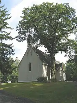 Church of St. John in the Wilderness is a historic Episcopal church in Copake Falls, Columbia County, New York. The church, its furnishing, and the parsonage were designed by noted ecclesiastical architect Richard Upjohn (1802-1878).[2] It was built in 1851 and is a one-story wood-frame building clad with board and batten siding in the Gothic Revival style. It features an open frame bell cote topped by a steep gable roof. Also on the property are a contributing parsonage (1853) and two cemeteries (1851-1911).