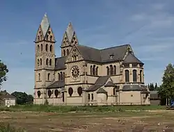 The Church of St. Lambertus (German: Pfarrkirche St. Lambertus), known locally as the Immerather Dom (meaning "Cathedral of Immerath"), was a Roman Catholic parish church in the village of Immerath, Erkelenz in North Rhine-Westphalia, Germany. A church dedicated to Saint Lambert of Maastricht had existed on the site since at least the 12th century, being rebuilt and enlarged a number of times before being demolished in 1888. It was replaced by Romanesque Revival church building, which was constructed between 1888 and 1891 to designs of Erasmus Schüller.