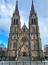The Church of St. Ludmila (Czech: Kostel svaté Ludmily) is a neo-Gothic Catholic church at Náměstí Míru (Peace Square) in Prague's Vinohrady, built on plans of Josef Mocker in 1888–1892. It is named in honor of St. Ludmila of Bohemia.