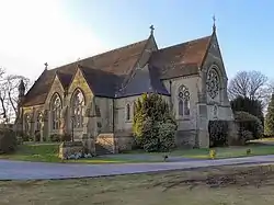 The church was built from 1864 to 1868.[1] It was the first Anglican church designed by Alfred Waterhouse, who had previously only worked on secular buildings.[2] It is in the Gothic Revival style and is made of coursed sandstone rubble with a red tiled roof.[1]